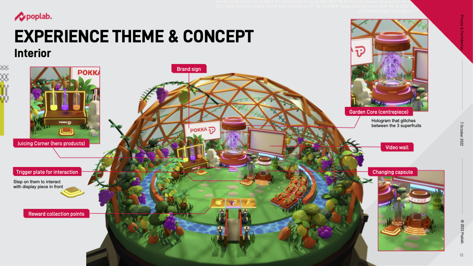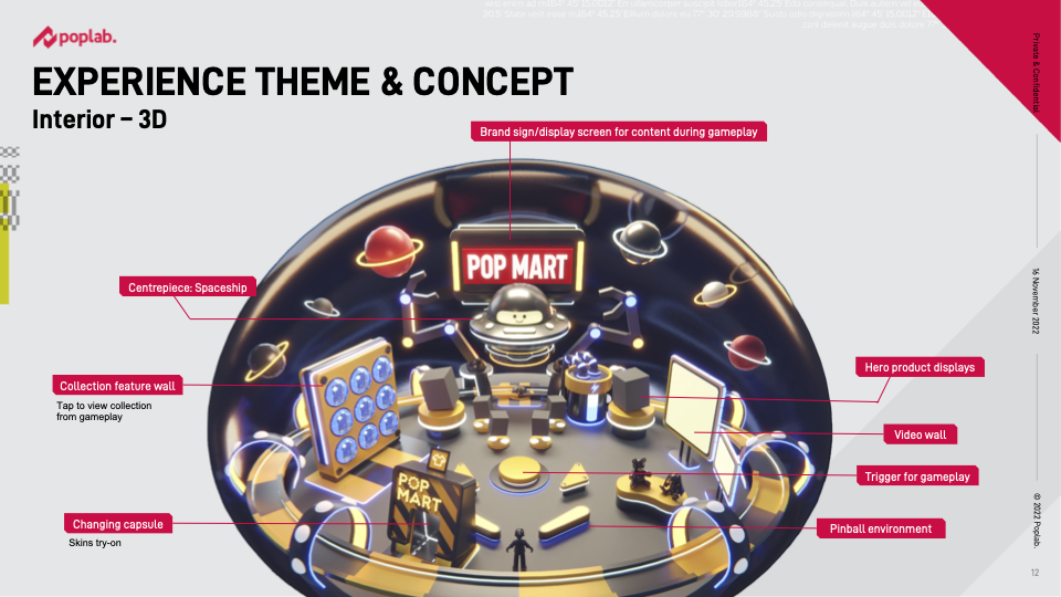 Poplab. mobile app is a virtual retailtainment experience that features our partner brands like POP MART, POKKA, etc in bespoke 3D environments, and allows users to complete quests and customise their avatars with dedicated outfits designed for each brand.